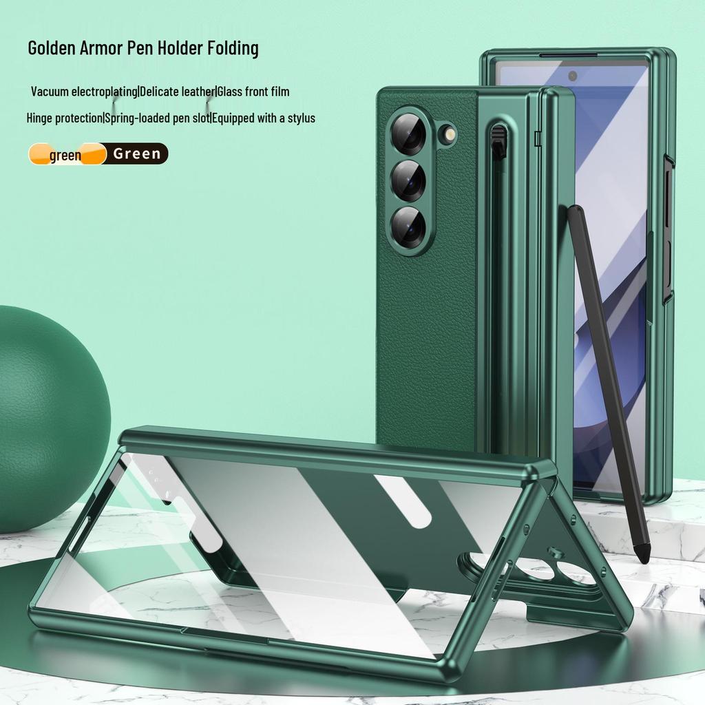 ZFOLD7: Spring-Loaded Pen Slot & Stylus Case for Samsung Z Fold 6/5/4/3 with Electroplated Leather Finish — comprar online na loja virtual Joom