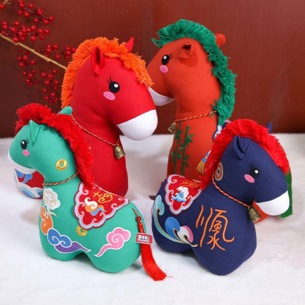 Stuffed Animal Chinese Horse Mascot Embroidery New Year Blessing Souvenir Festival Decoration