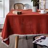 Toalha de Mesa Retangular Colorida com Pompons e Franjas Estilo Boho de Algodão à Prova de Poeira Para Decorações de Mesa de Cozinha e Sala de Jantar