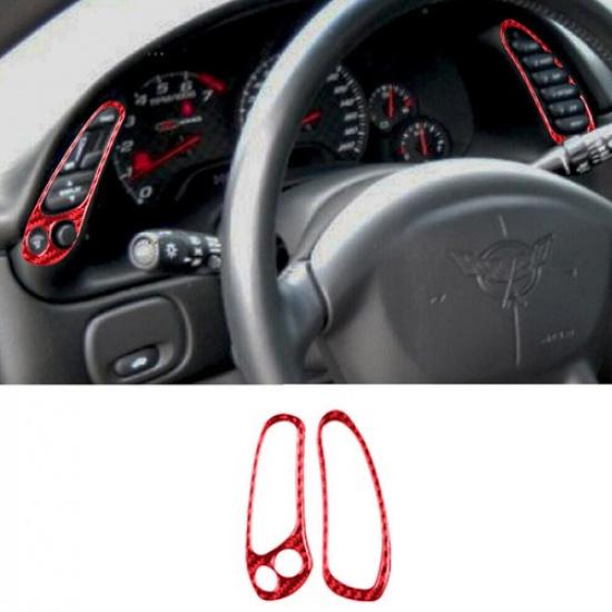 2Pcs Red Carbon Fiber Speedometer Side Cover Trim For Corvette C5 1998-04 Type B