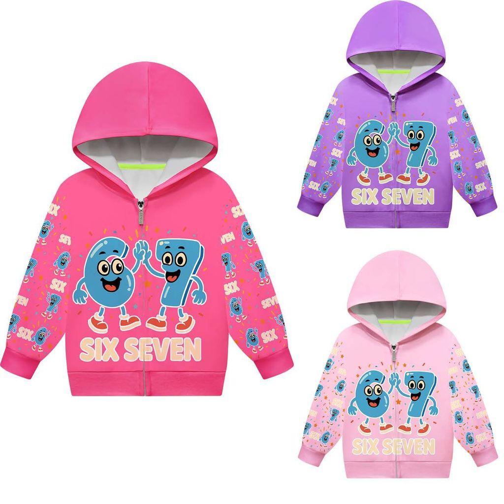 Girls Steal a Brainrot 67 Printed Regular Outwear Hooded Zipper Long Sleeves Jacket Coat