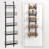【Organizador Multiuso para Pendurar na Porta】Um simples suporte de porta tem múltiplos propósitos, pode ser usado como prateleira para porta de despensa, porta-temperos suspenso, organizador de armário de cozinha, porta-temperos, organizador de produtos de higiene pessoal para banheiro, organizador de latas para despensa, organização de lanches e prateleiras de armazenamento. A espessura da porta para o suporte de porta é de 5,5 cm/2,16 polegadas. Observação: Por favor, meça com antecedência antes de comprar.
