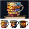 Caneca Livro Ilustrado Caneca Empilhável 3D Livro Caneca de Café Literária Desenhada à Mão para Amantes de Livros Professores Bibliotecários Presente Criativo
