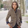 Blazer Curto Tweed Castanho Claro com Acabamento Azul Marinho, Fecho Assimétrico com Botão Frontal — comprar online na loja virtual Joom