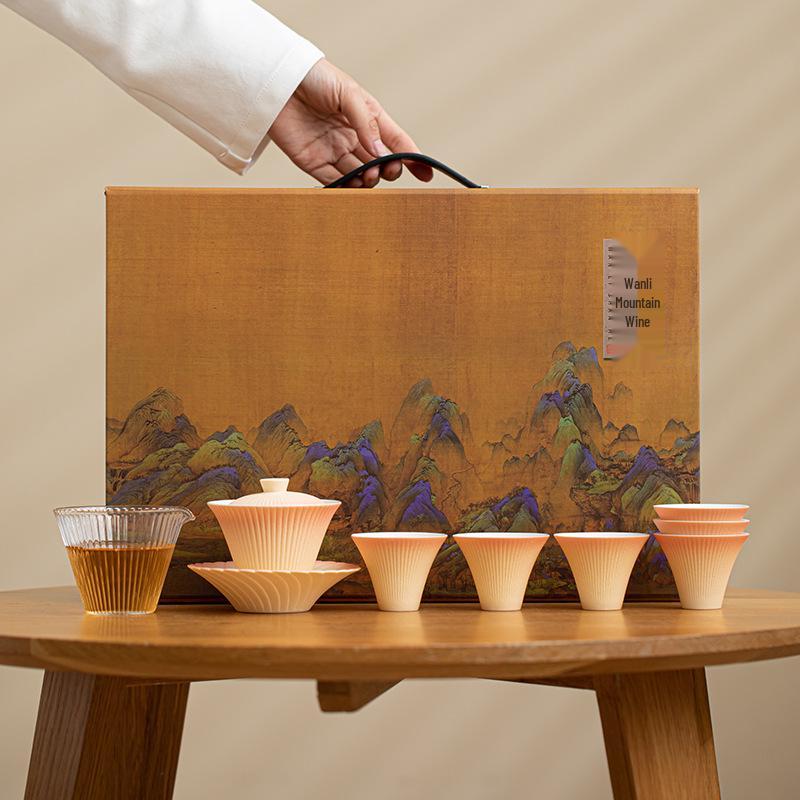 Gradient Fireworks Blooming Gaiwan Teacup Set - High-end Ceramic Kung Fu Tea Set with Gift Box for Spring Festival Souvenir — comprar online na loja virtual Joom
