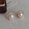 Silver Triangle Swirl Stud Earrings with Zircon and Pearl – French Retro, Luxurious Versatile Design