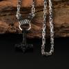 Popular Viking Fist Hammer Pendant Necklace with King Chain - Retro and Bold Design
