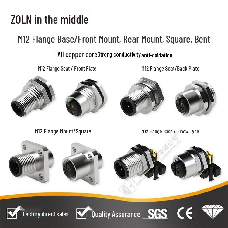 M12 Flange Aviation Plug: IP68 Waterproof Male & Female Connector for Industrial Automation Sensors