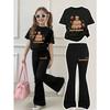 Cute Capybara Children's Short Sleeved Set, Pink Capybara Pattern Round Neck T-shirt with Flared Pants — comprar online na loja virtual Joom