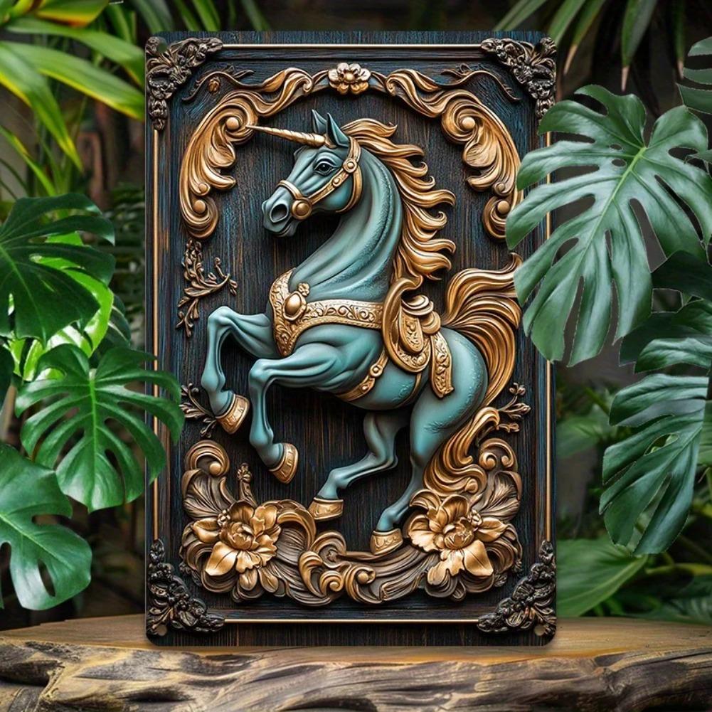 Blue Horse Metal Wall Art Vintage Embossed Aluminum Sign for Living Room — comprar online na loja virtual Joom