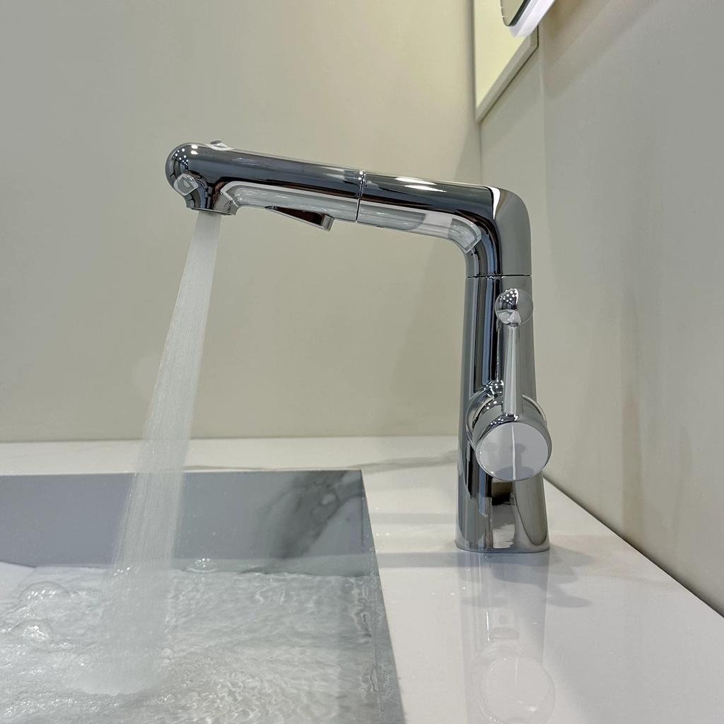 Adjustable Bronze Pink/Yellow Pull-out Bathroom Basin Faucet Splash-proof Rotating Cold And Hot Mixed Water Basin Faucet