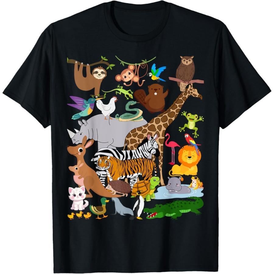 Animais do Zoo Vida Selvagem Festa de Aniversário Dia do Zoo 24 Animais Camiseta(1)