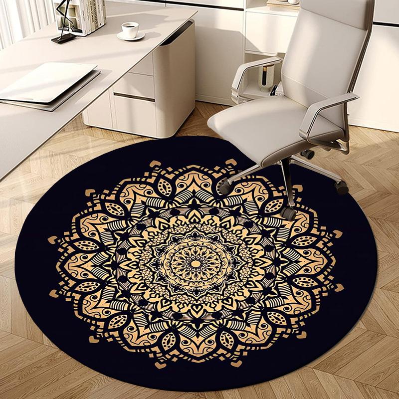 1pc Golden Mandala Pattern Round carpet, Made of Polyester,Perfect for Decorating Office Chairs, Living Rooms,Vibrant Decorative Rug