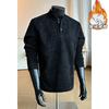 Men's Retro Plus Velvet Velour Hoodie - Autumn/Winter Henley Style, Clean Fit Twill Base Layer