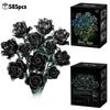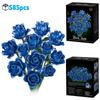 585Pcs Gothic Black Pink Blue Rose Flower Bouquet Building Blocks Set Creative Decoration Valentine Gift Idea Beautiful Box