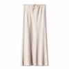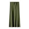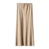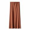 Saia longa feminina de cintura alta, saia longa de cetim suave com zíper, cor sólida, primavera, outono, saia feminina com rabo de peixe e quadril