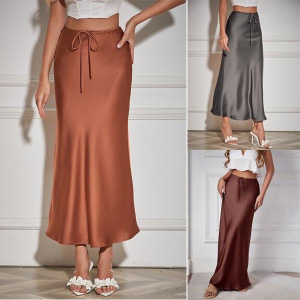 Saia longa feminina de cintura alta, saia longa de cetim suave com zíper, cor sólida, primavera, outono, saia feminina com rabo de peixe e quadril — comprar online na loja virtual Joom