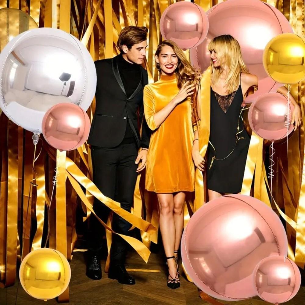 Silver 4D Balloons 50/60 Inches Metallic Balloons Round Balloons New Year Accessories