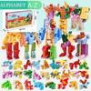 26 letras A-Z Alfabeto Animal Dinossauro Guerreiro Figuras de Ação de Deformação Robô de Transformação Brinquedos Para Crianças Presente Brinquedos