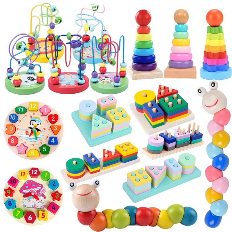 Brinquedos de Madeira para Crianças Correspondência de Formas Brinquedo Educacional Infantil Montessori Relógio Torre Arco-Íris Lagarta Rodando Contas Presentes TMZ