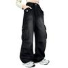 FJSSLHXK Men's Wide Denim Jeans, Oversized Jeans, Gaucho Pants with Adjustable Drawstring, Unisex, Fall, Winter, Spring, Black, FJJYFM8003-BLACK-5XL