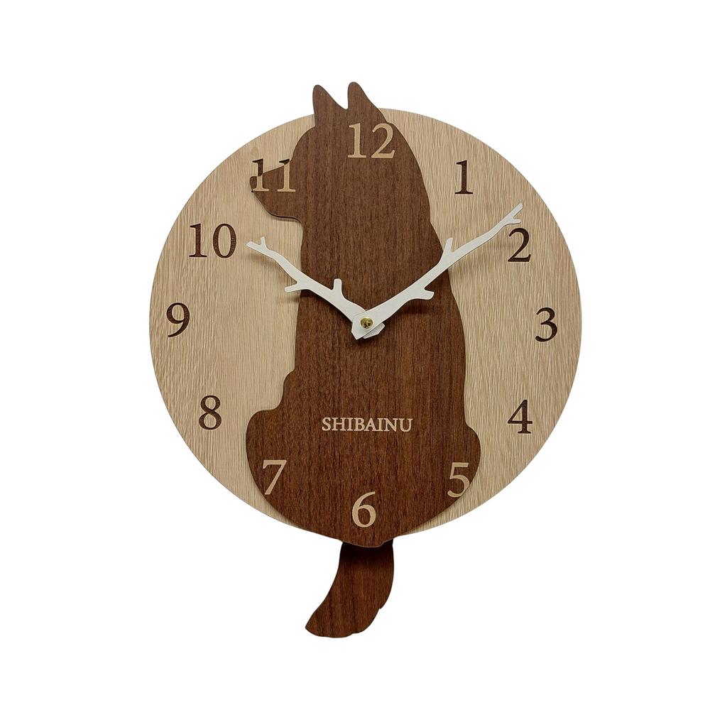 Shiba Inu Brown Wall Clock with Pendulum, Wooden Design, Quiet, Natural, Stylish, Dog Lover's Gift, Dog Motif, Nordic Style, Cute, Wagging Tail