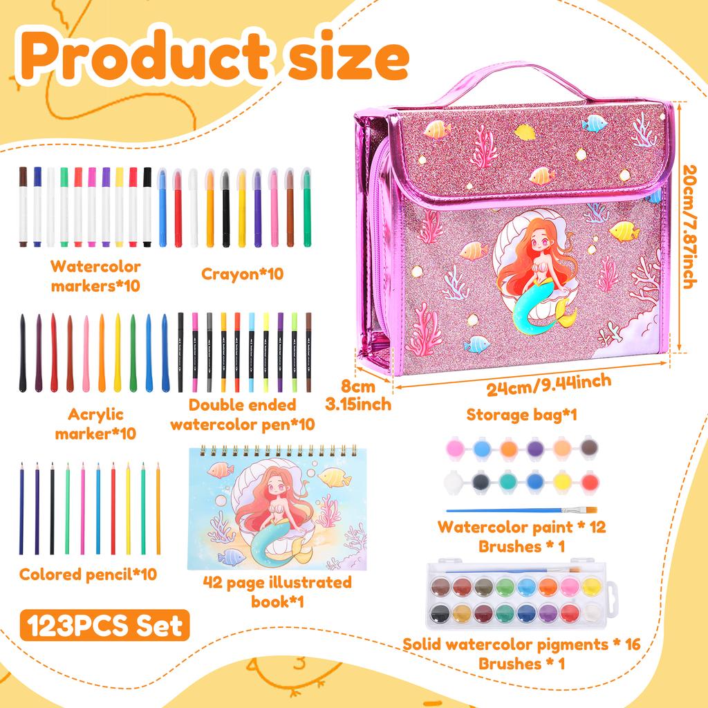 123Pcs Washable Markers Set Creative Watercolor Drawing Kit Cartoon Stationery Case with Marker Acrylic Pen Crayon Kids Gifts