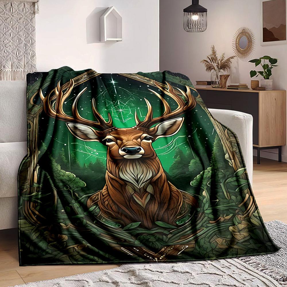 1pc Mystical Deer Print Flannel Blanket [Cozy Throw Blanket] For Sofa, Bed, Travel, Camping, Livingroom, Office, Couch, Chair, And Bed — comprar online na loja virtual Joom