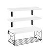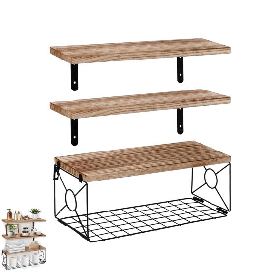 Prateleira Flutuante de Parede para Banheiro com Cesto de Metal Prateleira de Parede de Madeira Rústica Acima do Vaso Sanitário Organizador de Armazenamento para Escritório em Casa Sala de Estar — comprar online na loja virtual Joom