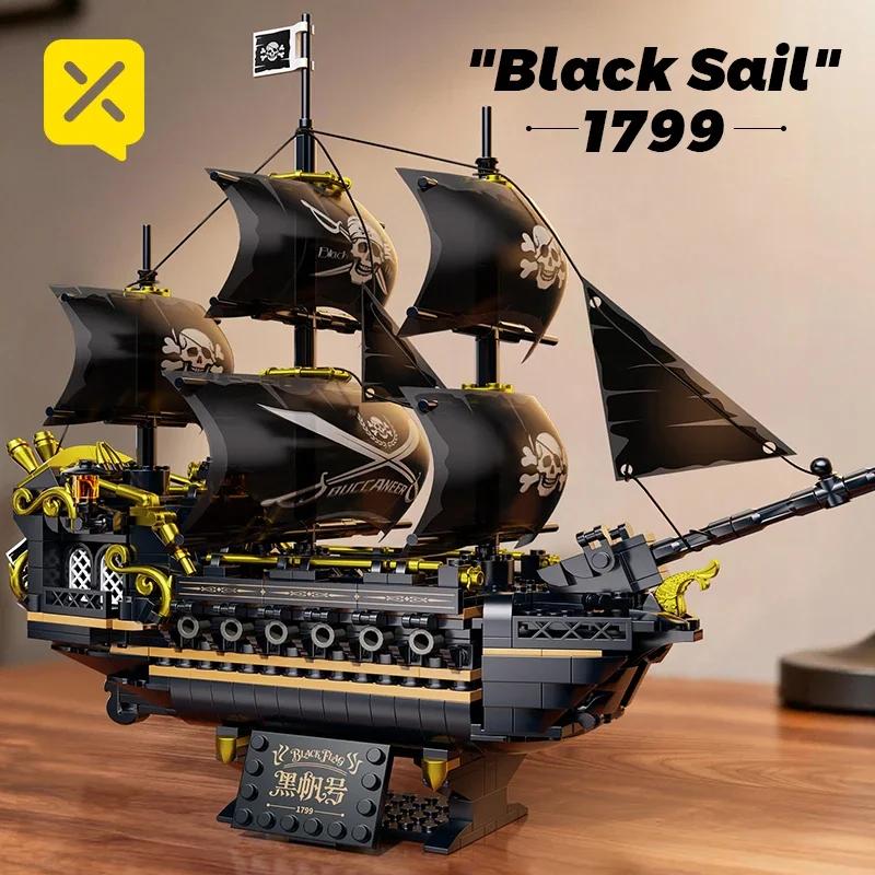 Kit de blocos de construção : Kit de Blocos de Construção Navio Pirata Vela Negra