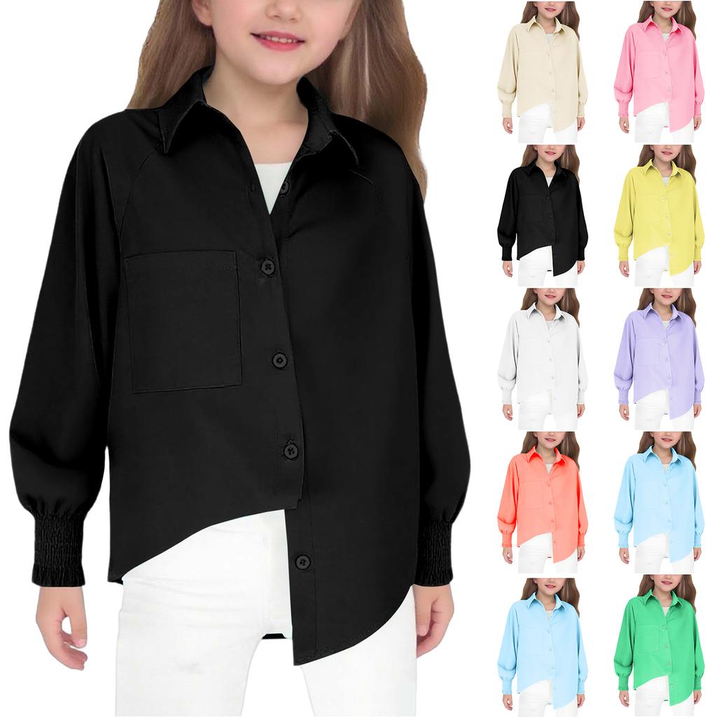 Children's Fashion Colour Relaxed Fit Girls' Comfortable Long-Sleeved Shirt Top For Older Children — comprar online na loja virtual Joom