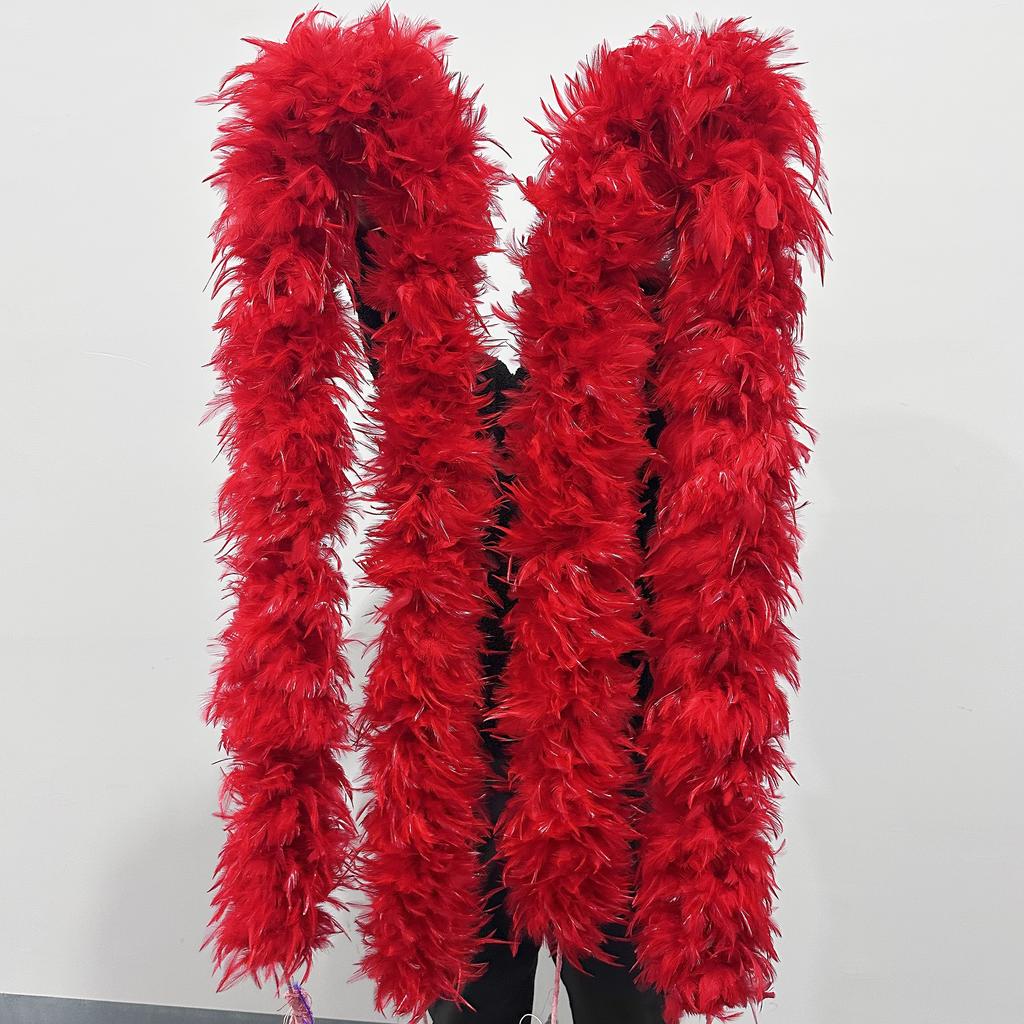 DIY Fluffy Red Chicken Feather Boa Scarf 2Meter Rooster Feathers Shawl for Wedding Carnival Party Dress Decoration Costume Accessory