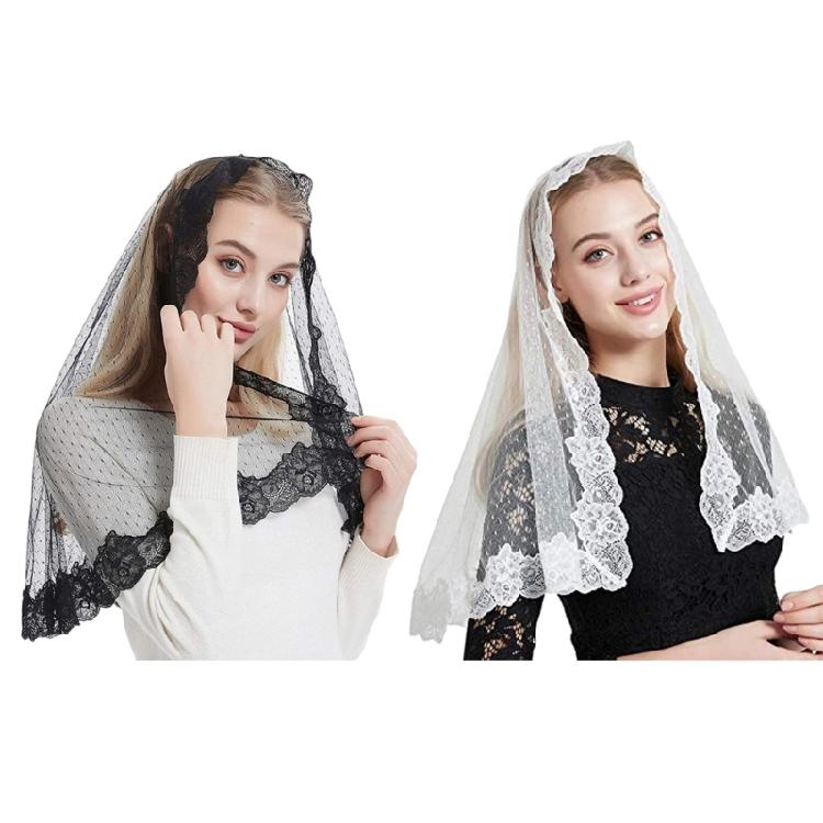 White Simple Veils Laces Traditional Mass Triangles Mantilla Veils for Women for Religious Event — comprar online na loja virtual Joom