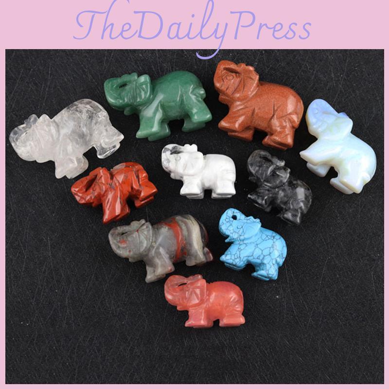 Elefante Exquisito Esculpido à Mão Pedra Natural Jaspe Turquesa Malaquita Cristal de Quartzo Ornamento Para Elegância Atemporal