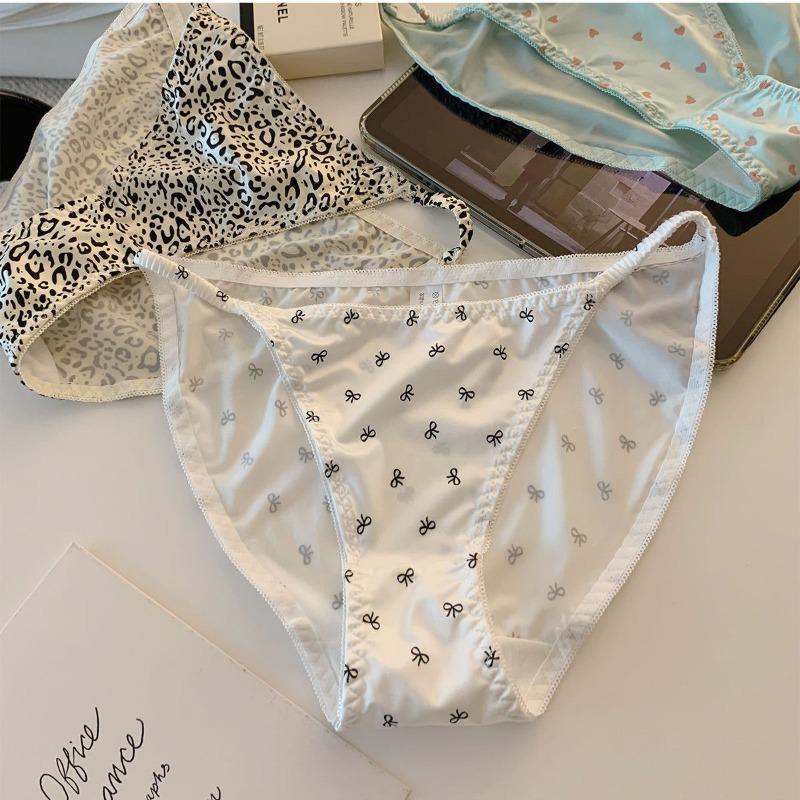 Women's Summer Sexy Leopard Print Breathable Ribbon High Split Cotton Crotch Low Waisted Briefs