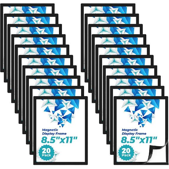 Magnetic Sign Holder, 20 Pack 8.5"x11" Magnetic Paper Holder,Self Reble Adhesive Frames,Picture Frame Document Holder Walls & Window Adhesive Frames