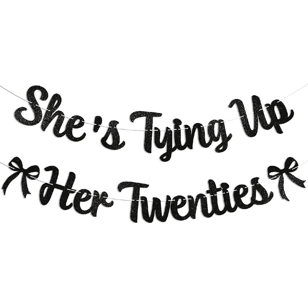 She's Tying Up Her Twenties Banner - Black Coquette 30th Birthday Decor, Black Bow Thirty Years Old Birthday Party Decorations — comprar online na loja virtual Joom