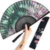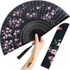 Hand Fan for Women Foldable - Folding Chinese Japanese Vintage Bamboo Silk Fan - Ideal for Hot Flashes, Church, EDM, Festivals, Dancing and Gifts