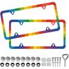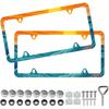Light Blue Seashells Beachy License Plate Frame - Unobstructed Narrow-Edge 2 Packs Universal Stainless Steel Car License Plate Frames Holder Solid