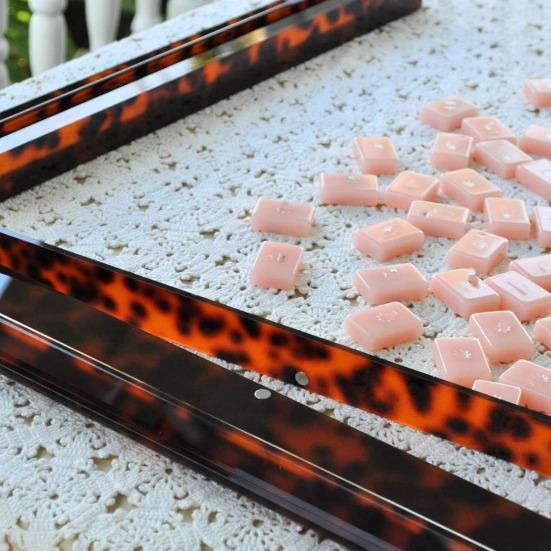 Construção em acrílico premium: Fabricados em acrílico de alta qualidade, estes expositores possuem um brilho elegante e um padrão clássico de casco de tartaruga na superfície.. A construção durável garante um uso duradouro, ao mesmo tempo que adiciona um estilo sofisticado ao seu conjunto de mahjong.