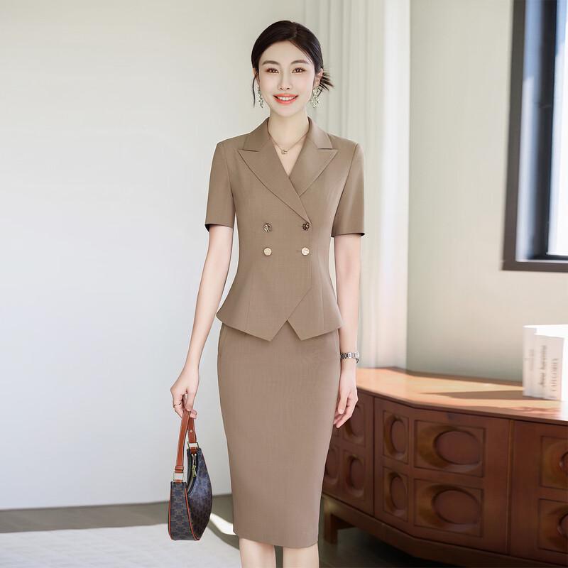Women's Light Khaki Short-Sleeve Blazer Suit