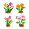 Apresentando quatro tipos de flores coloridas, incluindo tulipas e girassóis, com pétalas e nervuras das folhas vibrantes, cada peça imita plantas reais com textura realista e uma base de terra simulada.. Ideais para entusiastas de bricolage ou como presentes atenciosos, estas figuras permitem combinações criativas para construir jardins em miniatura únicos, cheios de vitalidade primaveril durante todo o ano.