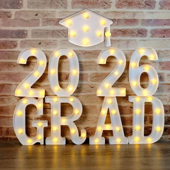 Ideal para Celebrações de Formatura: Projetadas para as formaturas de 2026 do Jardim de Infância, Ensino Médio e Faculdade, estas luzes de letras LED servem como detalhes decorativos perfeitos. Eles iluminam festas de formatura com iluminação significativa, tornando momentos memoráveis ainda mais especiais, ao mesmo tempo que complementam decorações temáticas sem esforço.