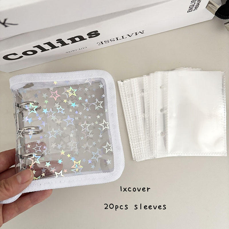 Mini PVC 3-Ring Binder Laser Star Design Zipper Closure Transparent Album For Photo Card Storage Memory Keeping Collecting Exquisite Fast Delivery