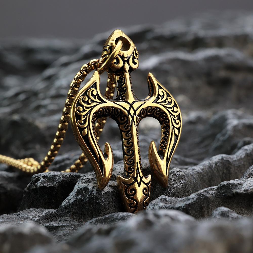 Colar Vintage de Titânio com Tridente de Poseidon Nórdico para Homens Pingente de Joia da Mitologia Viking