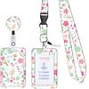 Staff Working Cards Holder With Retractable Long Lanyard And Badge Reel Flower Id Credit Cards Holder Cover For Woman Phone Rope
