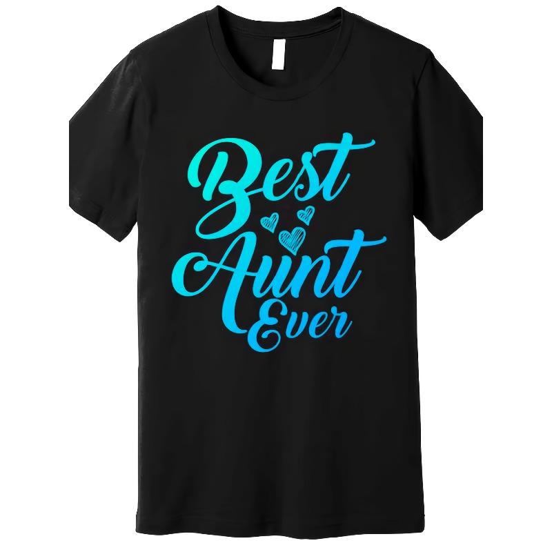 Women Plus Size Best Aunt Ever Graphic T-Shirt Black Turquoise Letter Heart Relaxed Fit All-Season Casual Family Gift Top — comprar online na loja virtual Joom