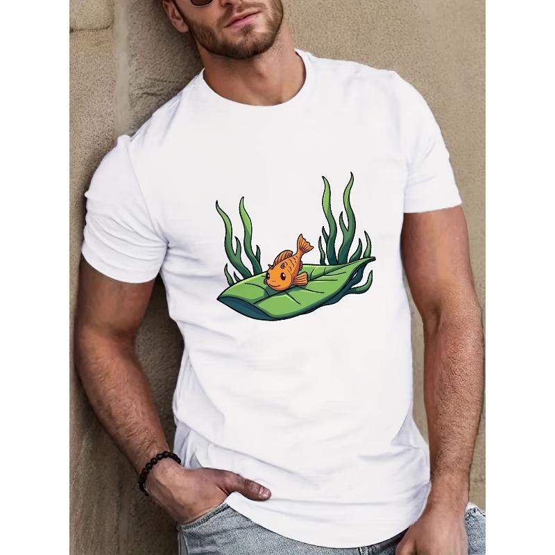 Tamanhos Europeus Camiseta Branca Masculina com Peixe-Palhaço Inspirado no Nemo | Estampa de Algas Marinhas, Manga Curta, Gola Redonda, Roupa de Praia de Verão — comprar online na loja virtual Joom