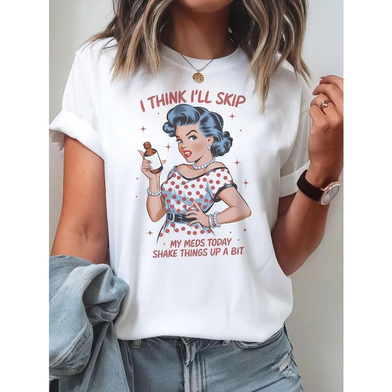 Tamanhos Europeus Feminino Engraçado Acho que Vou Pular Meus Remédios Hoje Camiseta Sarcástica Pinup Retrô - Camiseta Vintage de Quadrinhos com design de vestido de bolinhas vermelhas — comprar online na loja virtual Joom