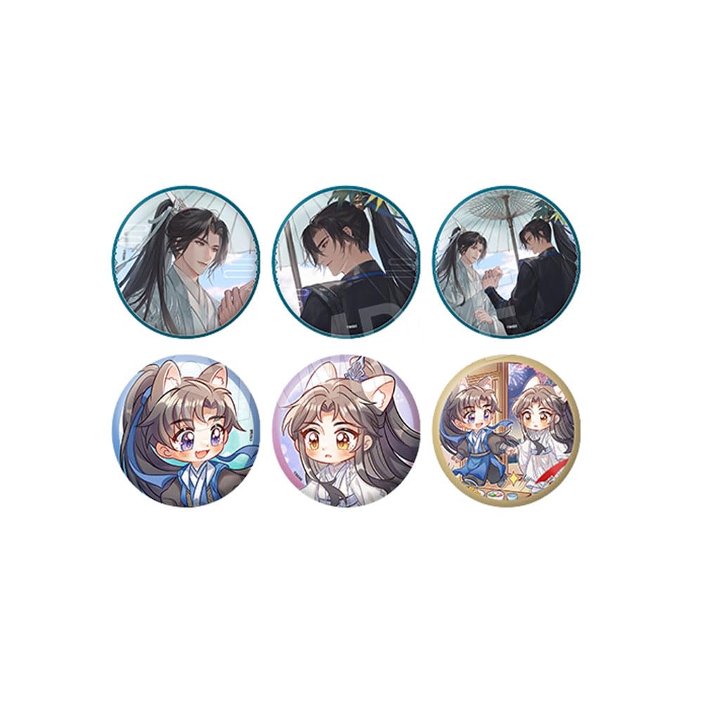 Niha e Seu Mestre Gato Branco Vendendo Insígnias de Lata com Glitter, Caixa com 6